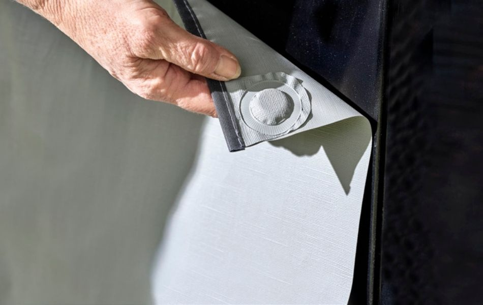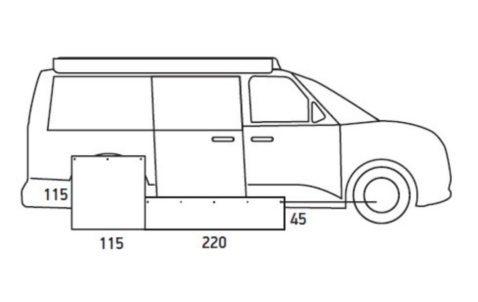 Vältä vedon ja kylmyyden tunkeutuminen campervanin alta tällä toimivalla ja kestävällä alussuojalla. Se tiivistää tehokkaasti pyörien välin ja tekee oleskelusta mukavampaa markiisin alla.