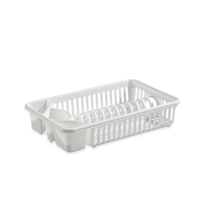 Pieni, kätevä tiskiteline polypropeenimuovista. Tilaa 12 lautaselle sekä kolme pienempää lokeroa ruokailuvälineille. Elintarvikehyväksytty, BPA-vapaa ja astianpesukoneen kestävä.