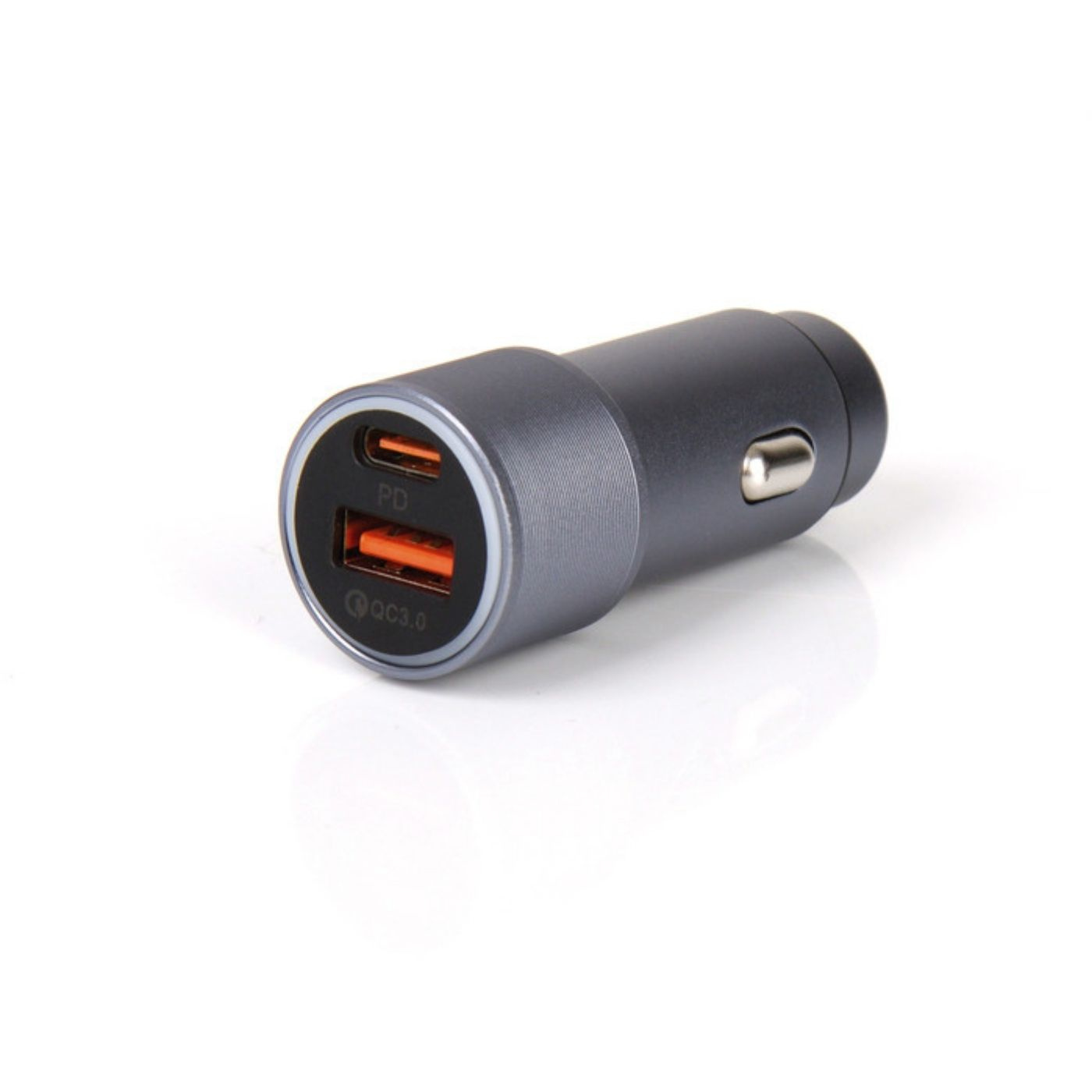 Kompakti USB-laturi, jossa 1x USB-A ja 1x USB-C -lähtö, täydellinen kahden laitteen nopeaan ja vaivattomaan lataukseen samanaikaisesti. Liitetään ajoneuvon tupakansytyttimeen. LED-merkkivalo osoittaa, kun laturi on käytössä.
