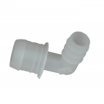 Muovinen liitos, jossa siirtyminen 19 - 30 mm 90 asteen kulmassa. Vesiletkuille.