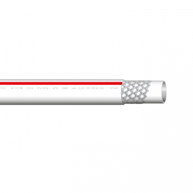 Joustava laadukas kylmävesiletku Väri: valkoinen punaisella raidalla Kestää lämpötiloja jopa +60 °C, lyhytaikaisesti jopa 100 °C Sisähalkaisija: 12 mm Ulkohalkaisija: 18 mm Elintarvikelaatu
