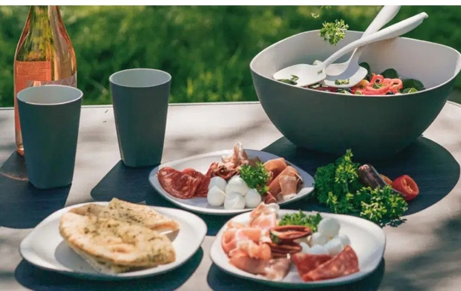 Tyylikäs ja kestävä astiasto kahdelle hengelle, joka sopii erinomaisesti retkeilyyn, matkailuvaunuun, asuntovaunuun ja piknikille. Setti sisältää ruokalautaset, jälkiruokalautaset, kulhot ja mukit elegantissa vihreässä sävyssä. Materiaali on kevyt mutta iskunkestävä ja kestävä, mikä tekee siitä ihanteellisen ulkokäyttöön ja matkalle. Astiat ovat pinottavia, joten ne säästävät tilaa kaapeissa ja pakkauksessa, ja ne on helppo puhdistaa käytön jälkeen. Sopii sekä lämpimille että kylmille ruoille ja kestää aktiivista käyttöä.