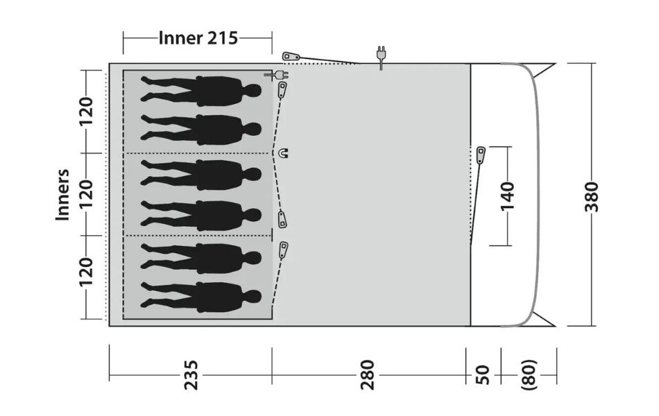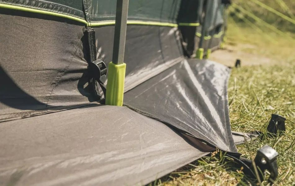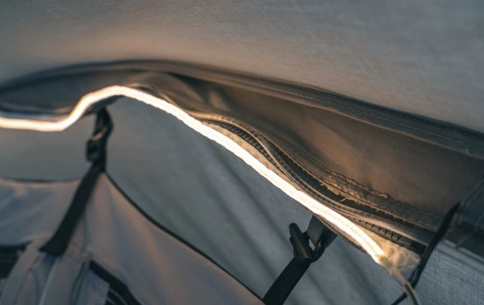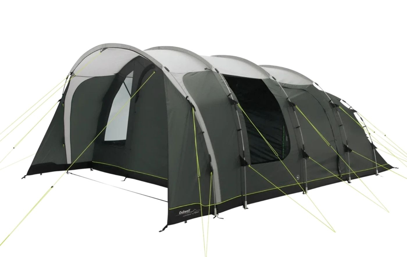 Integroitu ja patenttihakemuksen alainen Outwell Light System tarjoaa himmennettävän valaistuksen oleskelutilaan ja luo miellyttävän tunnelman. Etukatos rullattavilla sivuilla lisää joustavuutta, ja ovien mesh-paneelit pitävät hyönteiset poissa.