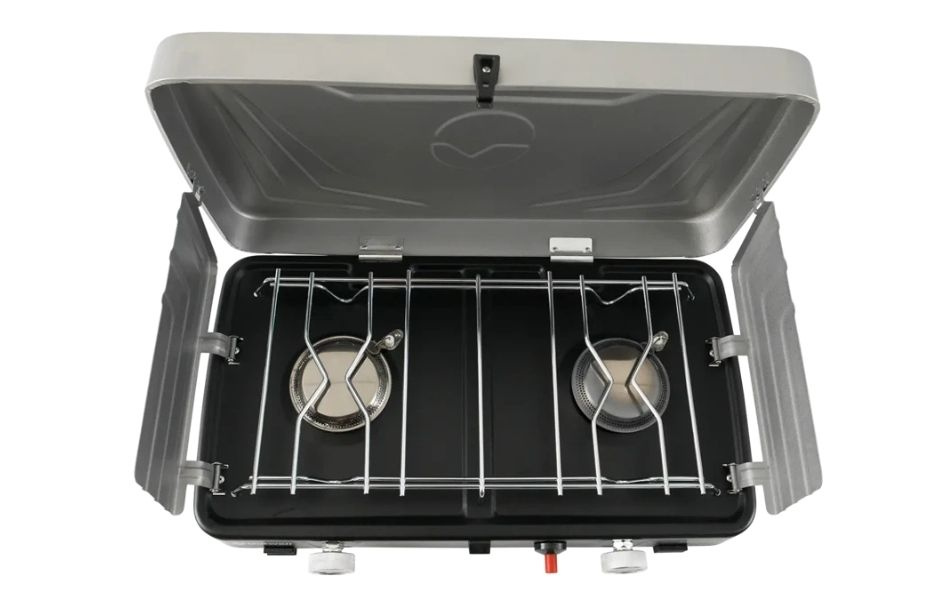 Outwell Katmai Duo on kompakti ja kannettava kaasuliesi, joka sopii täydellisesti ulkona ruoanlaittoon. Liesi käyttää EN417-kierteisiä itsesulkeutuvia kaasupatruunoita ja siinä on automaattinen piezo-sytytys helppoon käynnistykseen. Kaksi tehokasta poltinta tarjoavat korkean lämpötehon ja ne ovat säädettävissä erikseen, joten voit valmistaa useita ruokia samanaikaisesti. Sisäänrakennetut sivutuulisuojat, kestävät ruostumattomat polttimet, muovijalustat vakauteen ja sinkkiseosnupit tarjoavat turvallisuuden ja tarkan lämmönsäätelyn. Turvallinen lukitusmekanismi, PVC-letku automaattisella sulkeutumisella sekä syväprätty kansi lisäävät jäykkyyttä ja kestävyyttä. Katmai Duo on luotettava valinta retkeilyyn, asuntoautoon, vaunuun ja ulkoiluun, tehden ruoanlaitosta helppoa ja mukavaa missä tahansa.