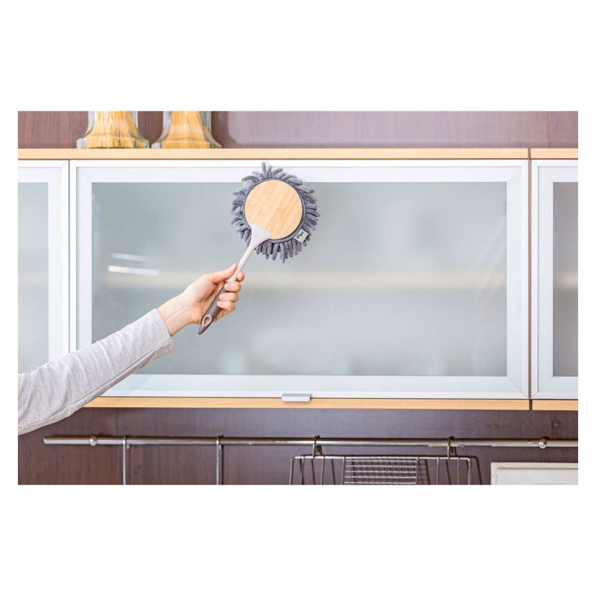 Pölyhuiska bambukahvalla. Huiska on mikrokuitua ja se voidaan irrottaa ja pestä koneessa 30°C:ssa.