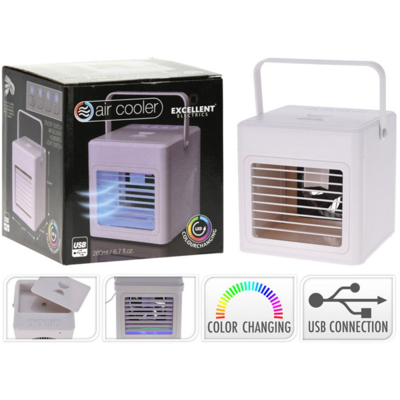 Virtalähde: USB-kaapeli mukana Mitat: 145 x 145 mm Korkeus 163 mm Vesisäiliö: 260 ml Tuuletin: 3 nopeutta Valaistus: 6 eri väriä, voit valita, että se vaihtaa väriä itse tai valitse haluamasi väri