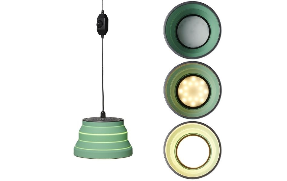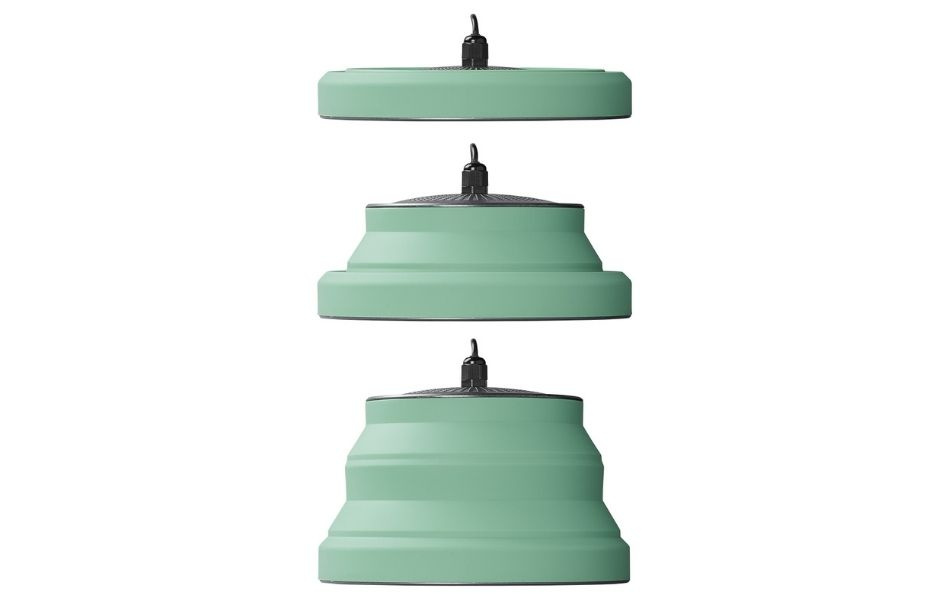 Älykäs, taitettava ja joustavasta silikonista valmistettu lampunvarjostin on korkeussäädettävä ja helppokäyttöinen etuteltassa, matkailuvaunussa, -autossa, veneessä tai kotona. Lamppu tuottaa miellyttävän lämpimän valkoisen valon (3000 K) 16 SMD LED -diodilla, yhteensä 360 lumenia, ja sen kirkkautta voi säätää portaattomasti johdossa olevalla kytkimellä. Taitettavan rakenteen ansiosta se vie vain vähän tilaa kuljetuksessa ja säilytyksessä. Mukana toimitetaan karabiinihaka ja kaapelinjakaja, jotka helpottavat ripustamista. Toimitukseen sisältyy myös 5 m kaapeli ja 110–240 V -sovitin.