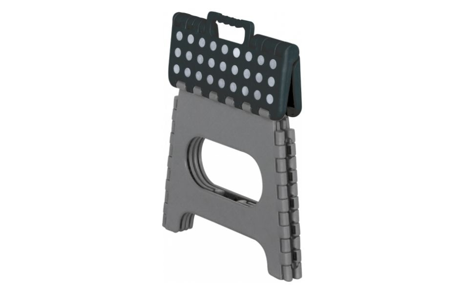 Taitettava jalkatuki PVC-muovia, koristeellisilla pisteillä. Kevyt ja helppokäyttöinen retkeilyyn, matkailuvaunuun tai -autoon. Kestää maksimipainon 150 kg.