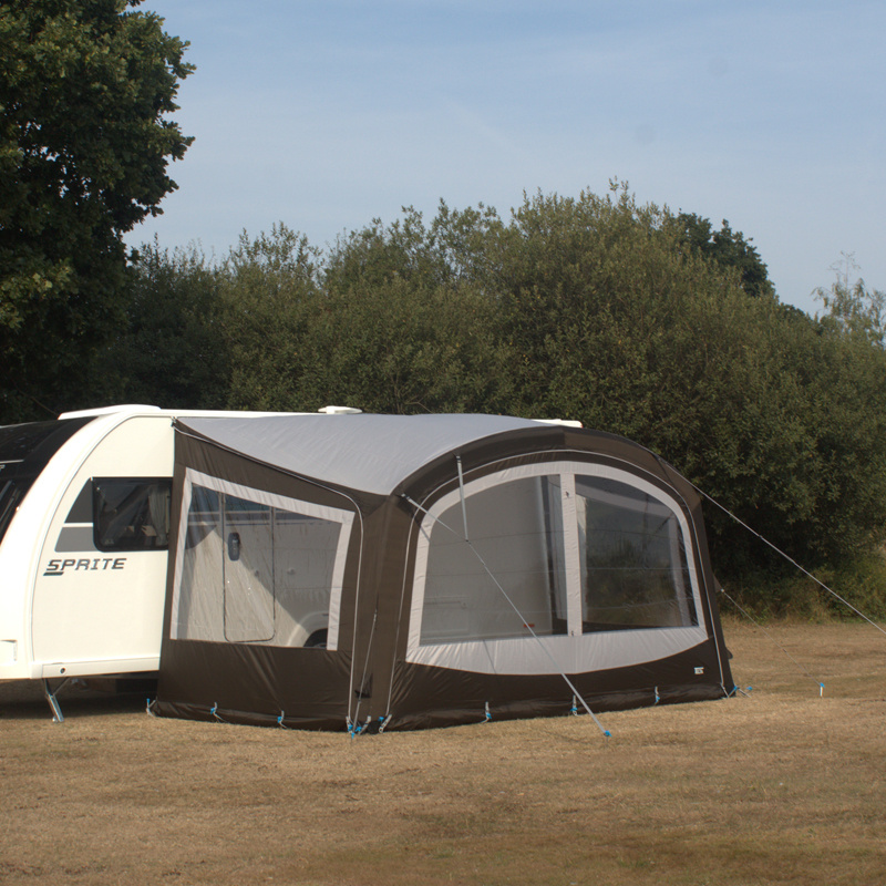 Täydellinen markiisi suojaamaan sinua aurinkoisina päivinä. Sky käyttää kevyempää polyesterimateriaalia painon ja pakkauskoon vähentämiseksi. Vetoketjulliset sivu- ja etupaneelit voidaan ostaa lisätarvikkeina, jotka suojaavat tuulelta ja sateelta. Koska Sky on täysin puhallettava, ei tankoja tai muita vaikeita yksityiskohtia tarvita. Toisin sanoen ei mitään, mikä voi vahingoittaa vaunua enemmän myrskyn sattuessa.