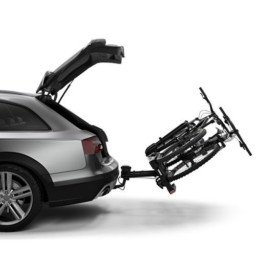 - Näppärän poljinkäyttöisen kallistustoiminnon ansiosta tavaratilaan pääsee käsiksi myös silloin, kun telineessä on polkupyöriä.