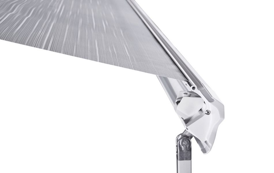 Täydellinen kankaan pingotus Perfect Fabric TensionTukevssa joustinvarsissa on vakiovarusteena patentoidut kiristystangot jotka varmistavat kankaan oikean kireyden ja lisäävät tuulivastusta. Kiristystangot ovat vakiona 3,75 m: n markiiseissa ja lisävarusteena 3,00, 3,25 ja 3,50 m: n markiiseissa.