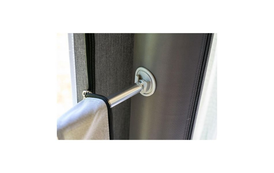Eksklusiiviset yksityiskohdat kuten Isaflex-kuminauha, musta pohja ja tummanharmaat ilmakanavat antavat teltalle tyylikkään ilmeen. Teltta toimitetaan täydellisenä verhojen, kuljetuslaukun, 12 V sähköpumpun, alustan, pyöränsuojan, liitospatjan ja kiilojen kanssa.