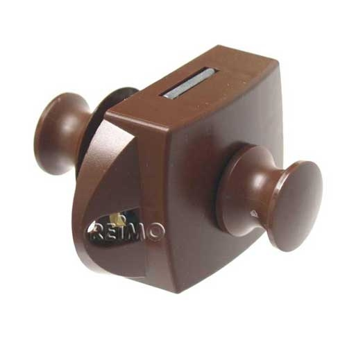 Vessanlukko, jossa push-lock-toiminto. Kun painat painiketta, avaat sen lukituksen ja samalla nuppia voidaan käyttää kahvana.. Lukko voidaan lukita sisältä, mikä tekee siitä